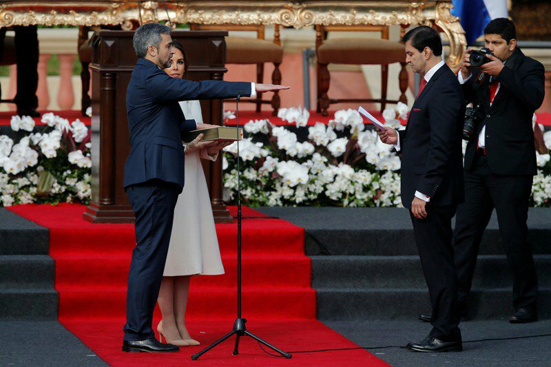Esos atributos presidenciales le habían sido entregados a Ovelar, antes en el Congreso, por el anterior presidente Horacio Cartes, también del Partido Colorado. Antes del juramento, Ovelar recordó a los presentes que se abre un “nuevo ciclo de Gobierno” e hizo constatar que el “bastón de mando pasa a una nueva generación”.