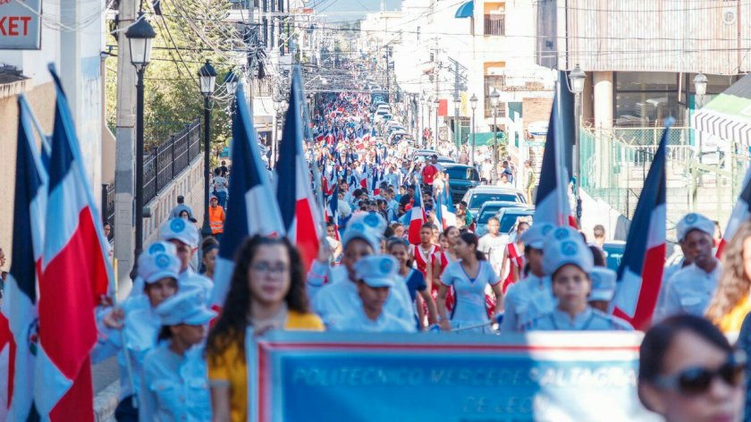Los actos conmemorativos iniciaron a las 8 de la mañana, con el izamiento de la Bandera Nacional, en la explanada de la Gobernación, luego de un Te Deum, en la Catedral Santiago Apóstol, oficiado por el obispo auxiliar de la Arquidiócesis de Santiago, Tomás Morel Diplán, a seguidas de un multitudinario desfile hasta la estatua del patricio, Juan Pablo Duarte, en la avenida que lleva su nombre, participando más de 4,500 estudiantes.