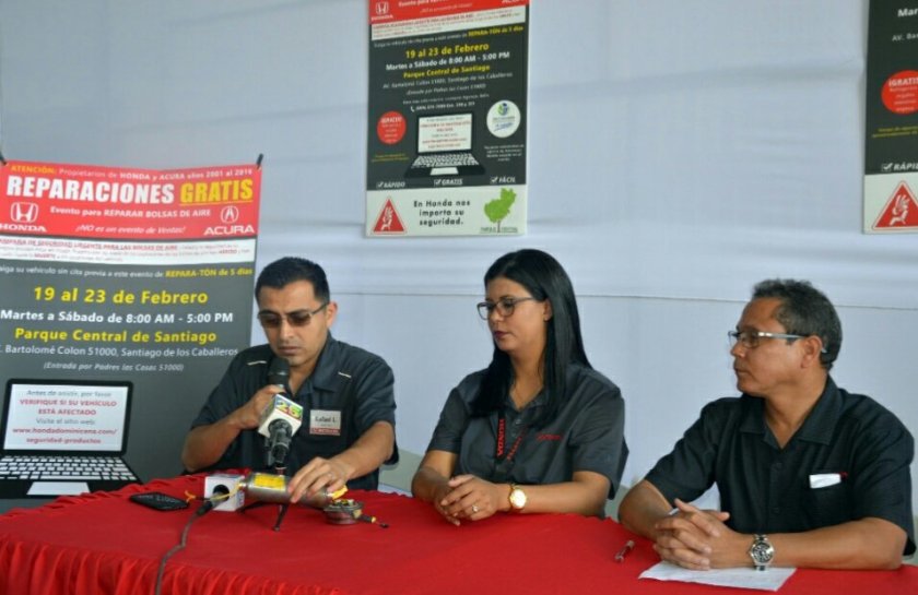 ¨Sugerimos a los propietarios de vehículos Honda y Acura a permitir la revisión y cambio de los infladores en el Parque Central de Santiago, pues esas bolsas de aire presentan defectos que puede afectar su funcionalidad y arriesgar a sus pasajeros¨, manifestó Ortega.