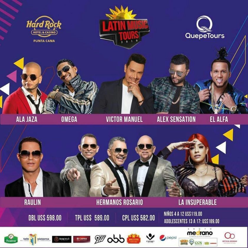 Fernando Quezada, presidente de Quepe Tours, empresa organizadora del Latin Music Tours, dijo que apuesta a esta súper cartelera para que el público asiduo a este evento anual disfrute de dos noches espectaculares en el más atractivo hotel del país, con fiestas y conciertos con todo incluido en Hard Rock Hotel & Casino Punta Cana, que cuenta con 1,787 habitaciones dotadas de jacuzzi, mini bar, bebidas y comidas las 24 horas, y 15piscinas disponibles.