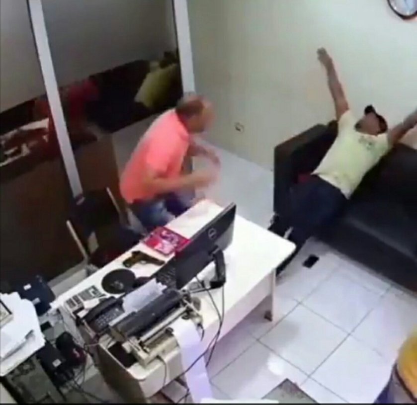 De acuerdo a las investigaciones policiales, el hecho se produjo momento en que los dos hombres se encontraban cada uno limpiando una pistola, adentro de una oficina de préstamopara cual laboran, localizada en la avenida Estrella Sadhalá de esta ciudad.