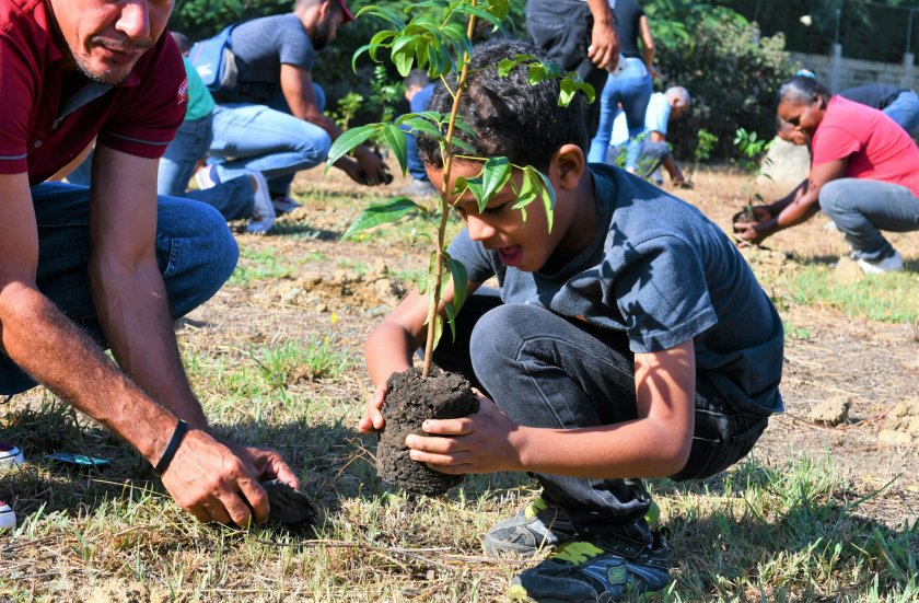 Las brigadas conformadas para las siembras plantaron mil árboles forestales y frutales germinados en el vivero que tiene CORAASAN en las instalaciones de la planta de Rafey.
