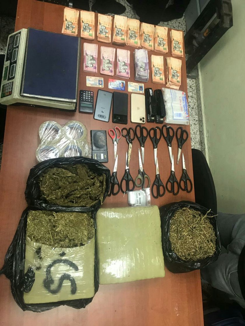 El organismo informó que a los detenidos se les ocuparon en una habitación de la vivienda allanada , 2 pacas de marihuana con un peso de 19 libras y en una mesa , dos porciones más con un peso de 4 libras y media arrojando un peso global de 23 libras y media de la sustancia alucinógena.