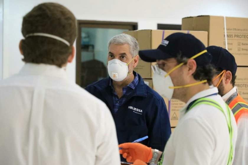 La aeronave HI-1040 propiedad de Helidosa, que trajo al país los insumos sanitarios, aterrizó a las 3:37 de la madrugada en el Aeropuerto Internacional Joaquín Balaguer, El Higüero, y fue recibido por el CEO-presidente ejecutivo del grupo Helidosa Aviation Group, Gonzalo Alexander Castillo.