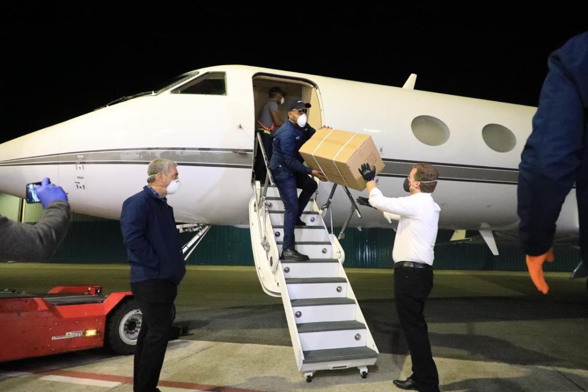 La aeronave HI-1040 que trajo los insumos sanitarios, aterrizó a las 3:37 de la madrugada en el Aeropuerto Internacional Joaquín Balaguer, El Higüero, y fue recibido por Gonzalo Castillo