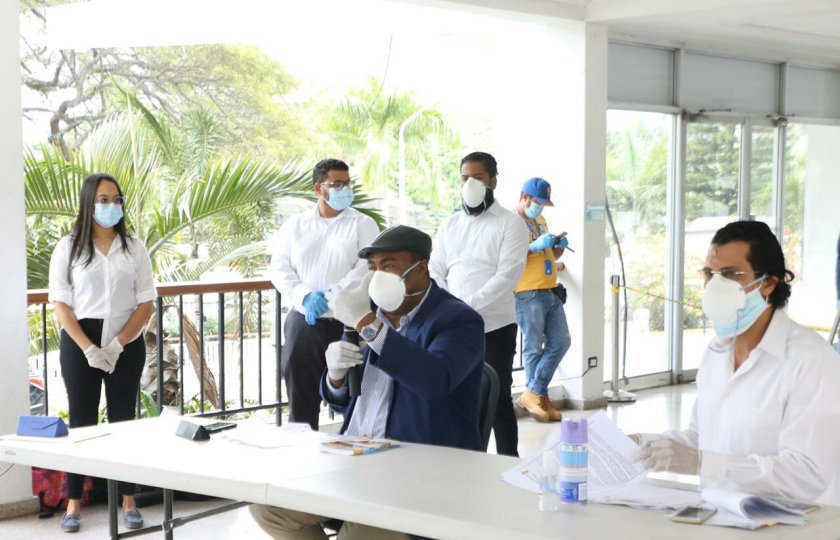 La Sesión, encabezada por Mérido Guzmán, presidente del Concejo Municipal, fue realizada en un área del Lobby de la sede municipal y todos los regidores presentes, así como el secretario general Héctor Ramírez, en representación del alcalde Abel Martínez y Félix Michel Rodríguez, secretario del Concejo Municipal, estuvieron con la debida protección, ante la situación que vive el país.