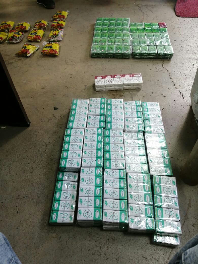 También incautaron 40 paquetes de cigarrillos que comercializarían de manera ilegal, violentando el protocolo establecido para su venta y 15 paquetes de sopitas hechas en patio.