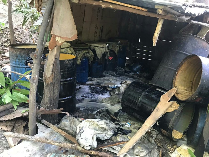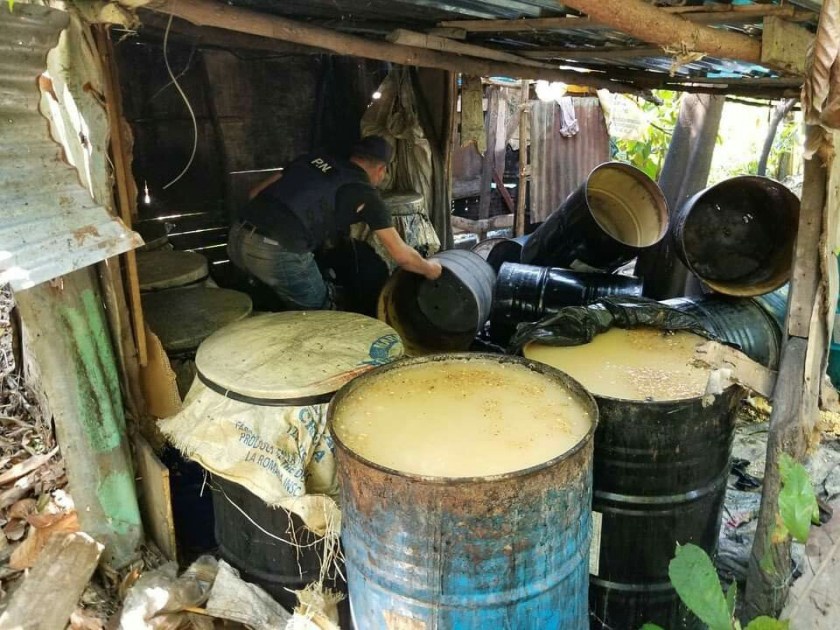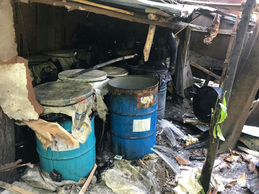 Incautan 19 tanques en el que almacenaban alcohol y granos de maíz para elaborar el ron adulterado.