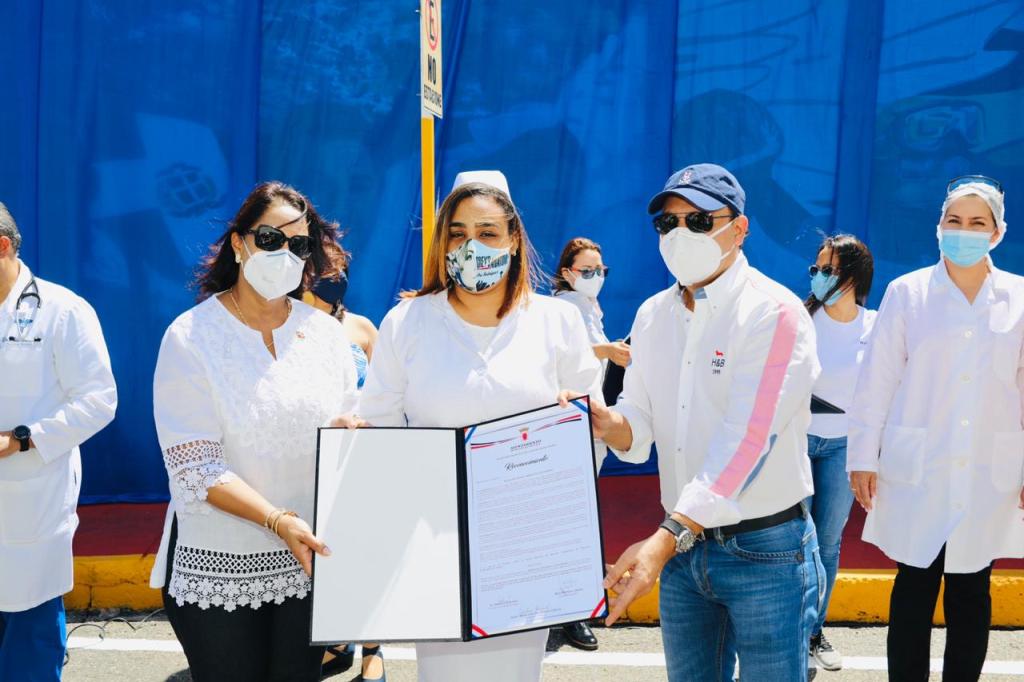 “Hacemos este acto que podemos llamarle humilde, pero con la grandeza de reconocer a héroes en esta pandemia y valorarlos, porque sabemos que ya no son anónimos, porque se han entregado en cuerpo y alma, como lo han hecho los médicos, enfermeras, bioanalistas, bomberos, la policía, los militares, el personal de limpieza, los voluntarios de la Defensa Civil y otros héroes que también se han entregado por igual a salvar vidas”, indicó Martínez.