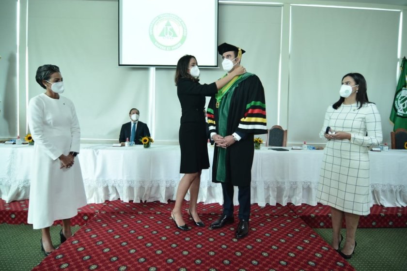 Frank Rodríguez González recibió de sus hermanas, la toga, último traje académico que utilizó su padre, la esclavina, el birrete, la banda, la medalla y el anillo.