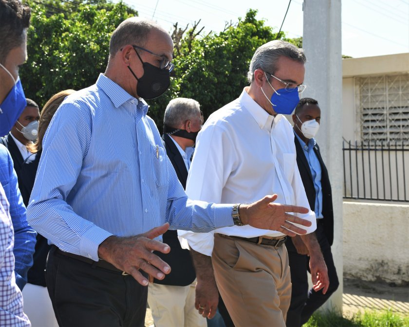 Abinader visita la zona en compañía del director general de CORAASAN, Andrés Burgos