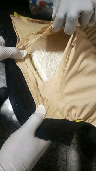Al requisar el chaleco tenía habilitado tres dobles fondos, donde se ocuparon varias láminas de cocaína, con un peso de 2.87 kilogramos, según el análisis del Instituto Nacional de Ciencias Forenses (INACIF).