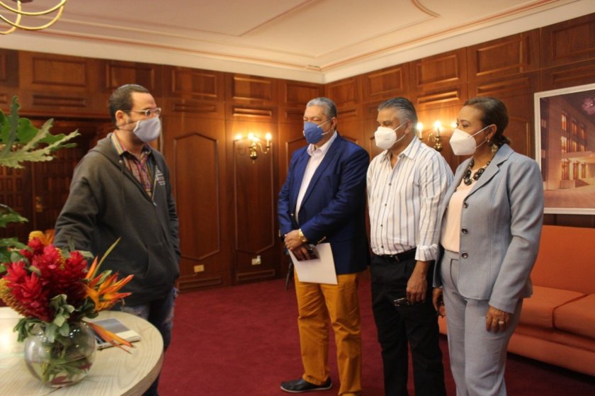 Ricard, mostró satisfacción por el gesto de una comisión de la directiva de Adompretur Santiago, la cual estuvo encabezada por su Secretaria General Yomaris Gómez e integrada además por Junior McDougal, director de Asuntos Interinstitucionales, Yamira Taveras, directora de Capacitación y Ramón Bierd, director de Relaciones Públicas, a quienes presentó los planes y las novedades que se pondrán en ejecución en los próximos días.