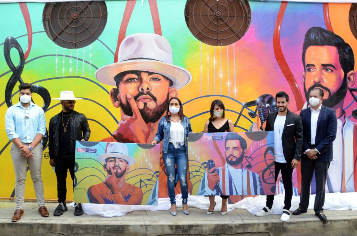 Santiago. – Los jóvenes intérpretes de música tropical, Manny Cruz y Gabriel Pagán, ya forman parte de la galería de arte urbano de Santiago, dentro del programa cultural Murales de Ciudad, impulsado por la alcaldía de este municipio, exitosa iniciativa del alcalde Abel Martínez, que honra a figuras del arte, el deporte, el cine y resalta nuestras costumbres y símbolos patrios.