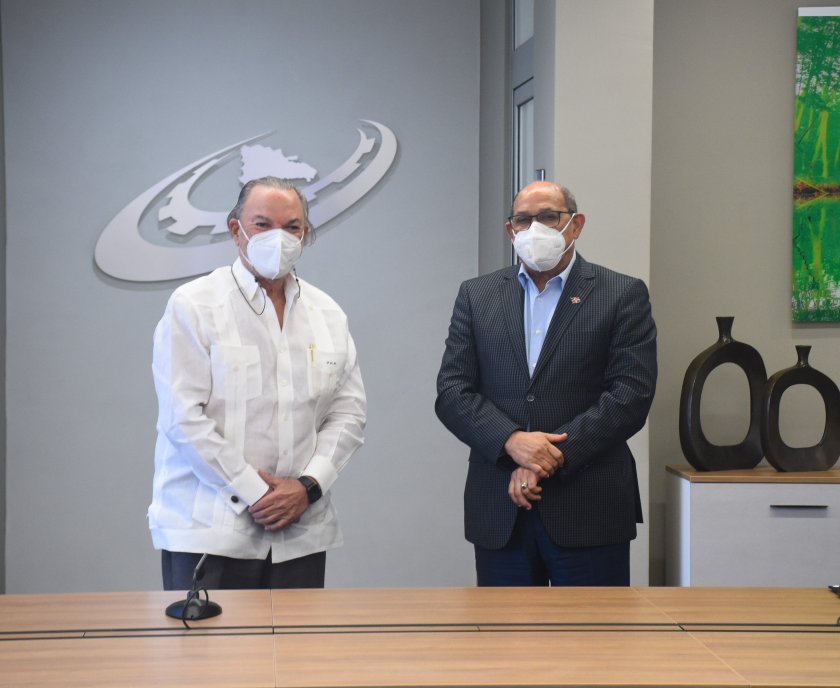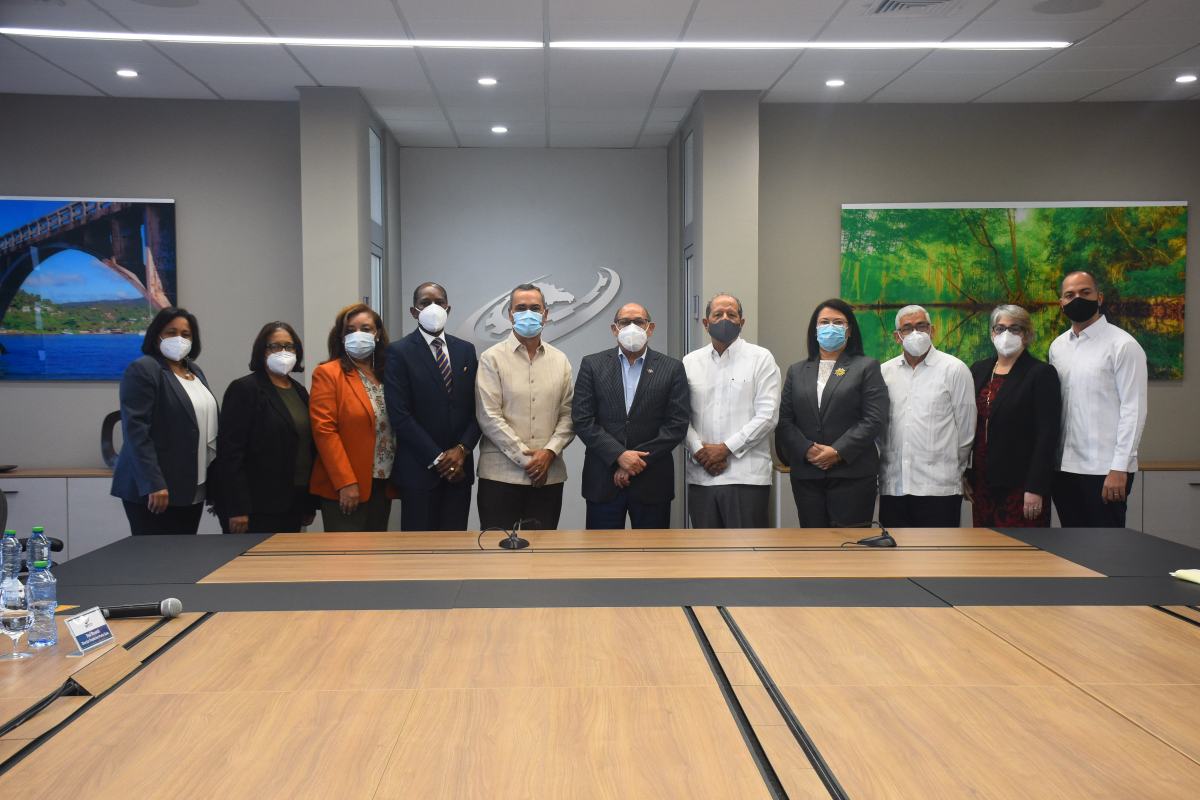 El director general de la entidad tripartita, Rafael Santos Badía, recibió en el salón de la Junta de Directores a los presidentes del Grupo Puntacana, Frank Rainieri; de la Asociación de Hoteles y Proyectos Turísticos del Este (ASOLESTE), Ernesto Veloz; y al de la Fundación Grupo Puntacana, Paul Beswick.