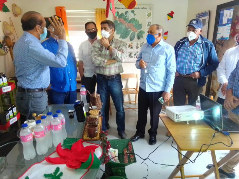 El encuentro con una visita especial del expresidente Hipólito Mejia tambien tuvo la participación del Ministro de Agricultura Limber Cruz y el director ejecutivo de Indocafé Leónidas Batista Díaz, quienes conocieron del empresario Luis Nuñez presidente de la asociación de productores de Café de Juncalito la problemática del cultivo, el mercado del grano, que debe mejorar con la producción para competir con otros mercados.