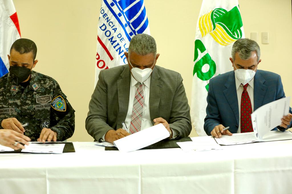 Para lograr este objetivo, el ministro de Interior y Policía, Jesús Vásquez Martínez; el director general de la Policía Nacional, Edward Ramón Sánchez González y el director ejecutivo del Inespre, Iván Hernández Guzmán, firmaron un acuerdo de colaboración interinstitucional.