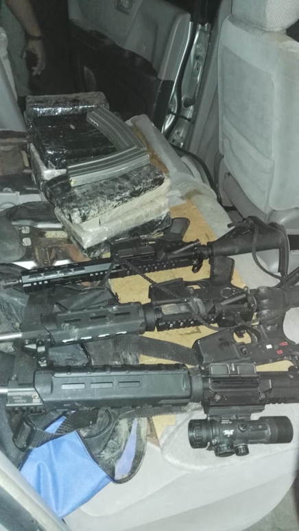 Entre las armas ocupadas figuran tres fusiles calibre 556 milímetros, 76 cápsulas para mismo, cuatro chalecos antibalas y quince kilos y cinco gramos de cocaína,