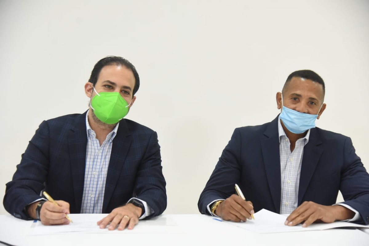 Santiago.-El presidente de la Cámara de Comercio y Producción de Santiago Carlos Iglesia y José Luís Aracena presidente de la Asociación de Baloncesto Santiago de los Caballeros (ABASACA) firmaron un acuerdo de colaboración con miras la versión número 41 del Torneo de Baloncesto Superior de Santiago, el cual está previsto iniciar el próximo miércoles 24 del presente mes, teniendo una especial y a la vicepresidenta de la República, Raquel Peña.