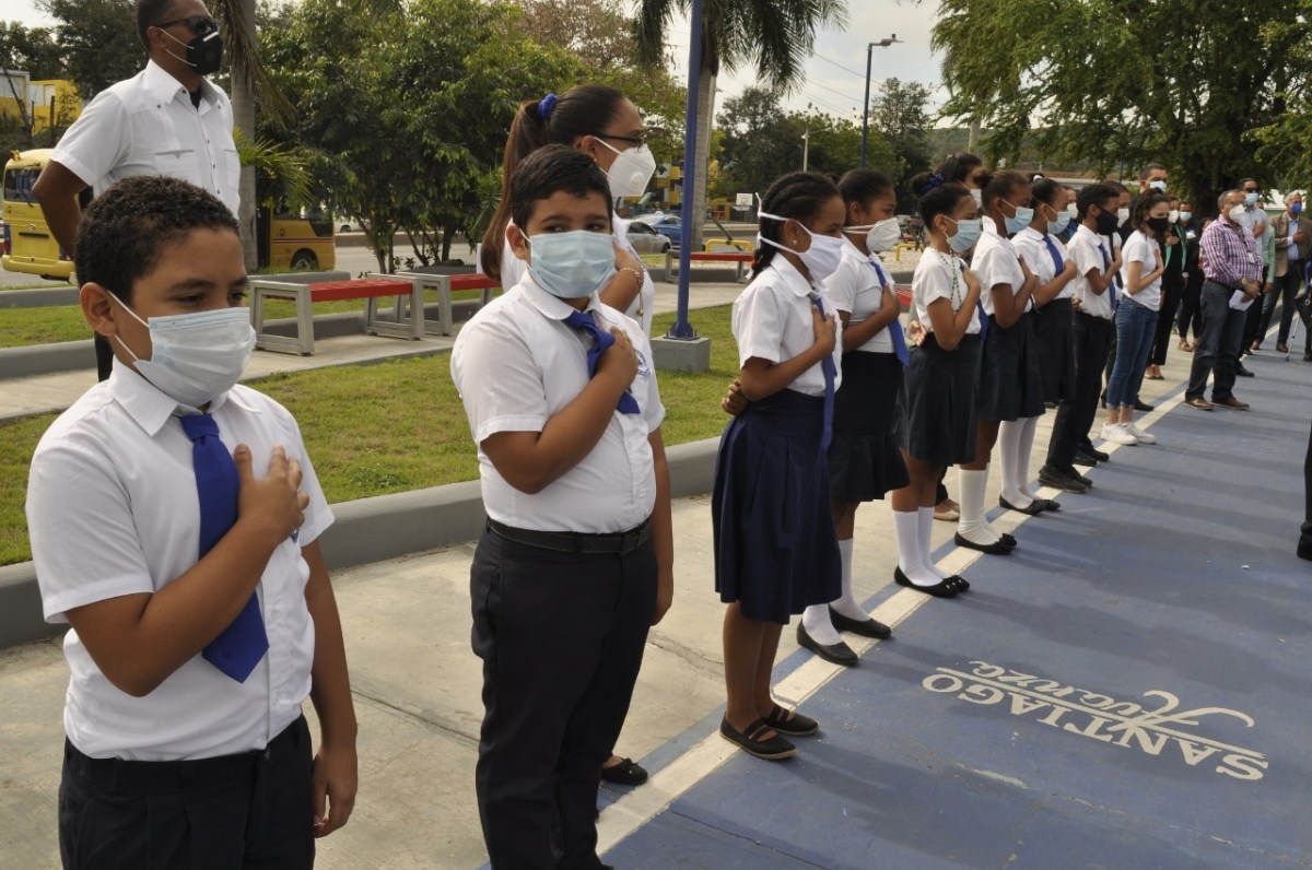 La maestra Vega leyó el nudo o problema del cuento frente a niños del centro educativo Ciudad Santa María que junto a maestros asistieron a la actividad que reunió a diversas personalidades provinciales y municipales.
