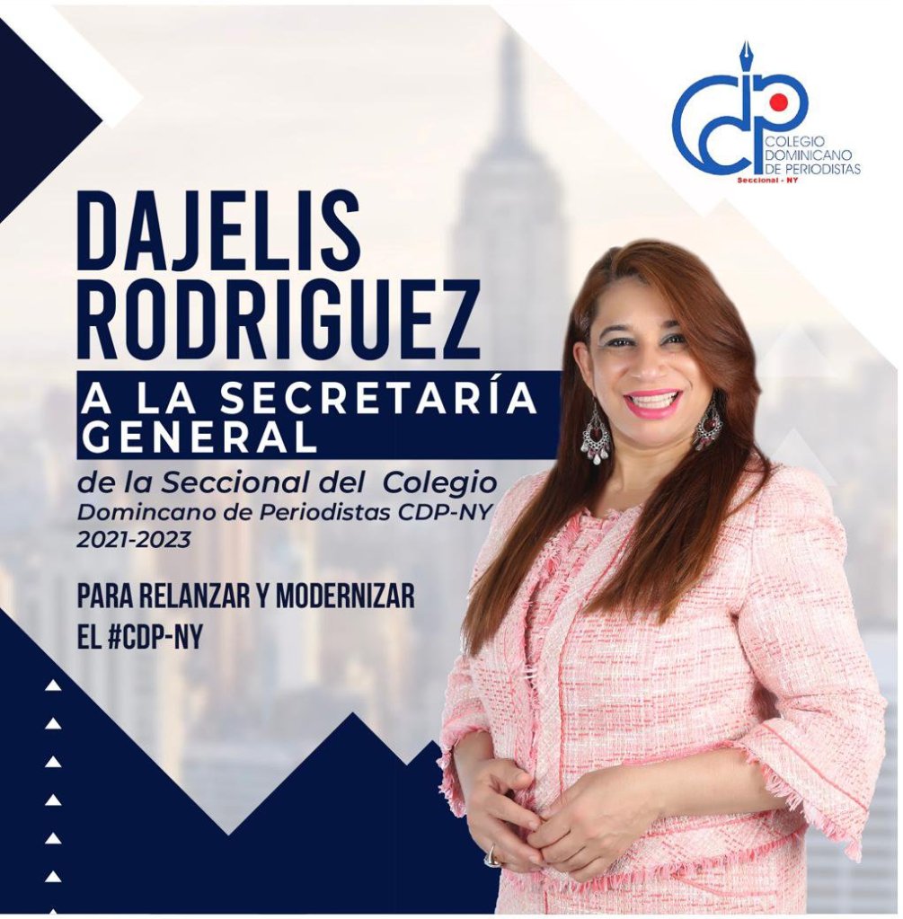 Con el objetivo de fortalecer una candidatura de consenso y unificación, la Periodista Dajelis Rodriguez, Lanza sus aspiraciones para encabezar dicha organización a la Secretaria General de la Directiva del Colegio Dominicano de Periodista Seccinal New York.