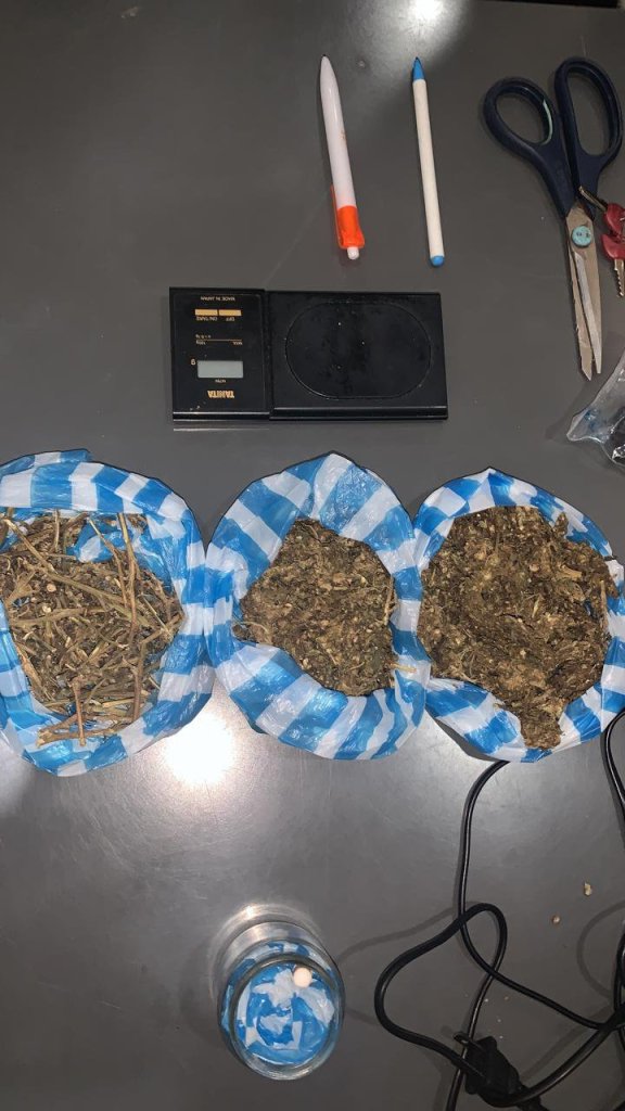 En tanto que, Estarlin Rodríguez Durán, fue apresado en el sector Gurabo, por miembros de la Unidad de Acción Rápida, quienes les ocuparon tres porciones de presunta marihuana, una balanza, cinco radios de comunicación, una tijera, dos cámaras, dos teléfonos, cuatro cargadores para radio, dos hand-free y un paquete de funda plástica.
