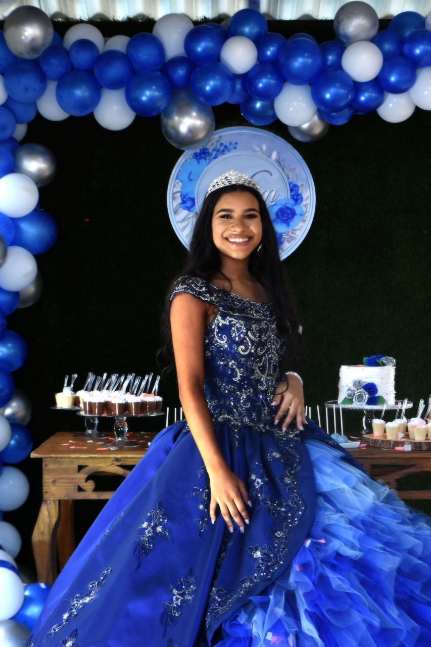 hizo el tradicional cambio de zapatillas que simboliza un nuevo capítulo en su vida como señorita y el recibimiento de la Santa Biblia de acuerdo a su fe cristiana.