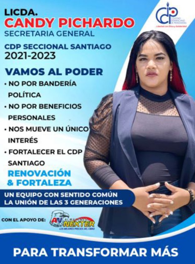 Con la posición número dos en la plancha Renovación y Fortaleza, la periodista Candy Pichardo presenta sus aspiraciones para dirigir en el próximo periodo 2021-2023, La Seccional del Colegio Dominicano de periodistas.