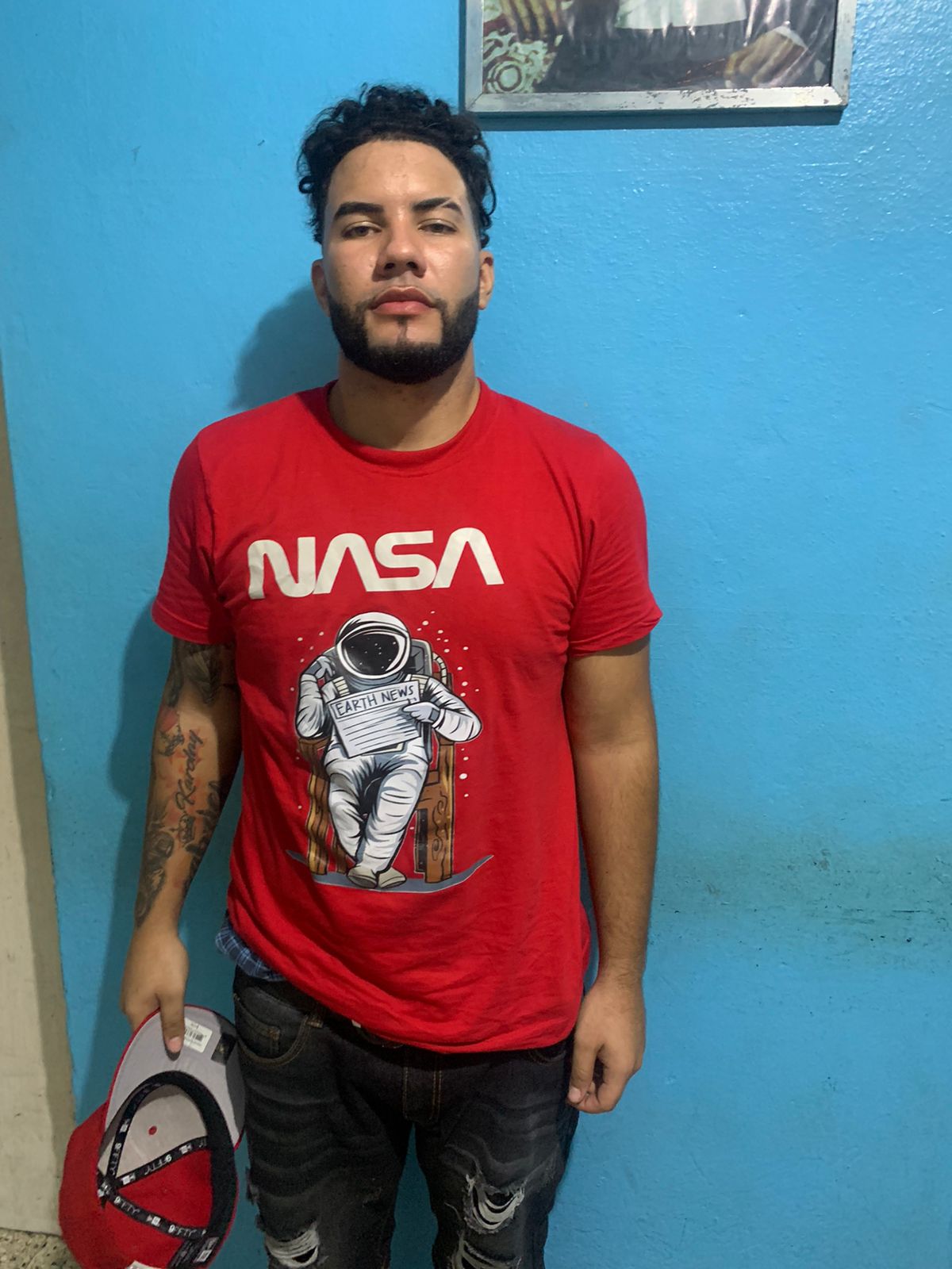 El detenido por una patrulla de la uniformada fue identificado como Gerónimo Edwardo Sánchez, de 27 años de edad, quien se desplazaba por la Avenida Joaquín Balaguer, a bordo de la Jeepeta marca Honda, modelo CRV, color gris, año 2013, placa No. G423433, chasis No. 2HKRM4H5XDH603906.