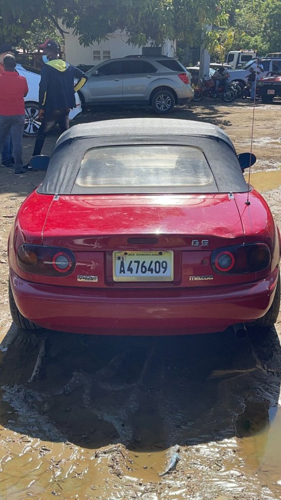 El vehículo recuperado es un Mazda Miata, año 93, color rojo, placa número A476409, chasis M1NA3512P410797, y el mismo al ser depurado figura sustraído a la señora Ana Mercedes Cruz Valdez, en la fecha señalada previamente.