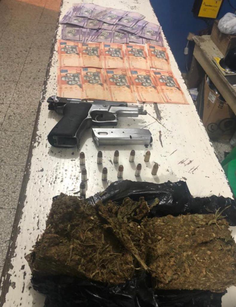 Al momento de ser arrestads le ocuparon aproximadamente una libra de marihuana y una pistola marca Smith & Wesson, serie TEH6202, con su cargador y (12) cápsulas para la misma, sin documentos que avalen su porte y tenencia.