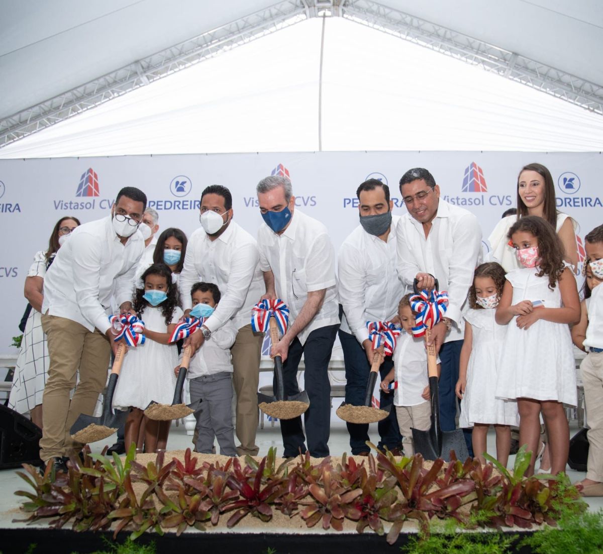 José Espinal, Presidente del Grupo Vistasol y Miguel Suárez, Presidente del Grupo Pedreira, agradecieron la presencia del presidente de la República, Luis Abinader Corona, al tiempo que resaltaron que gracias a los esfuerzos del presidente, el sector construcción ha sobrevivido a la pandemia y se coloca como el principal responsable del crecimiento que ha experimentado el país en este año.