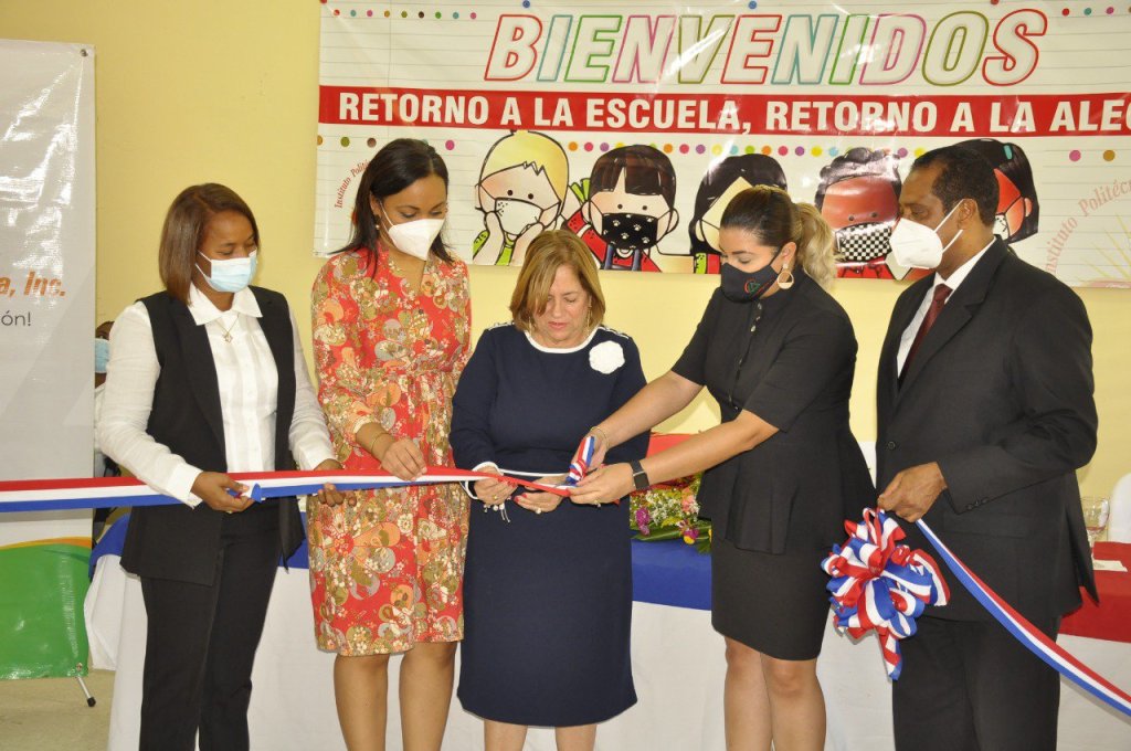 Marieta Díaz y Rafael Narciso Vargas junto a Yinet Torres y Janna Pérez, gerente general y de gestión social de la Cooperativa, respectivamente, realizaron el corte de la cinta para dejar en funcionamiento la red de internet que impactará de manera positiva a la comunidad educativa de ese instituto politécnico que forma bachilleres en diversas áreas como la informática, enfermería, contabilidad, entre otras.