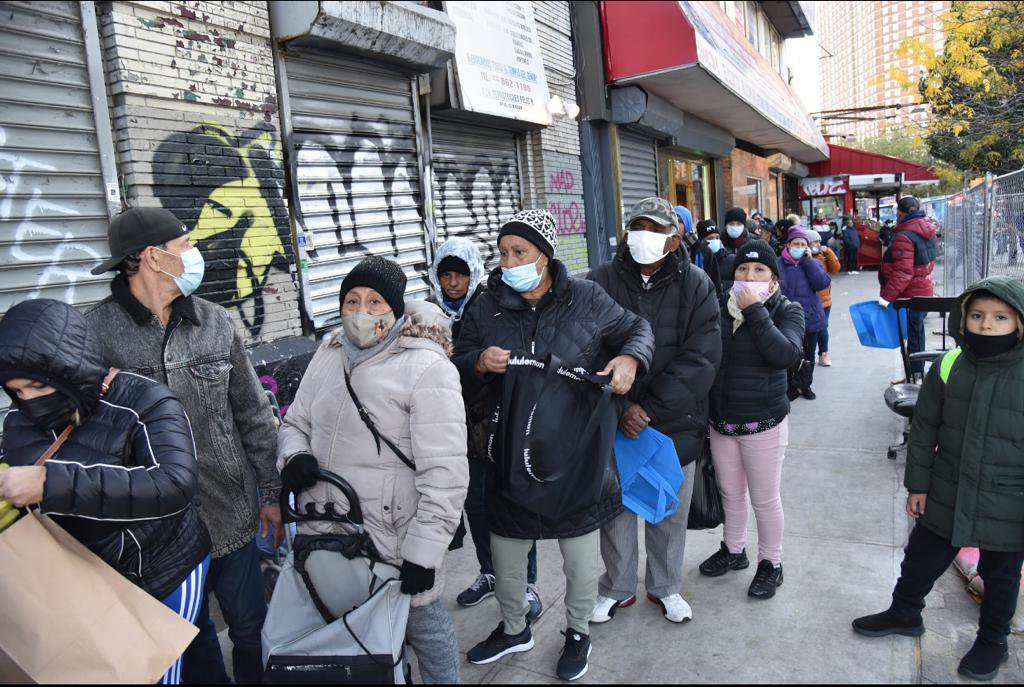 En la actividad que se realizó en la Avenida Broadway y la calle 137, en Manhattan, durante el fin de semana donde se distribuyó arroz, aceite, habichuelas, tomate, cebollas, papas y frutas, entre otros productos de la canasta familiar..