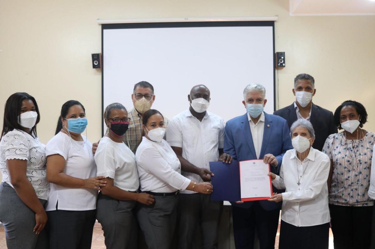 “Desde que le presenté al presidente Abinader esta solicitud, tuvo un gesto de gran valoración y aceptación inmediata” dijo Estrella al hacer entrega de la carta asignación de los recursos al equipo directivo del politécnico encabezado por las hermanas Juana Cubero y Arisleyda Rincón de la Congregación Hijas de Jesús que rige la entidad, así como el director general Roberto Cabrera y los integrantes de la Asociación de Padres, Madres y Amigos, José Reynoso, presidente y Emiliano Sosa, miembro.