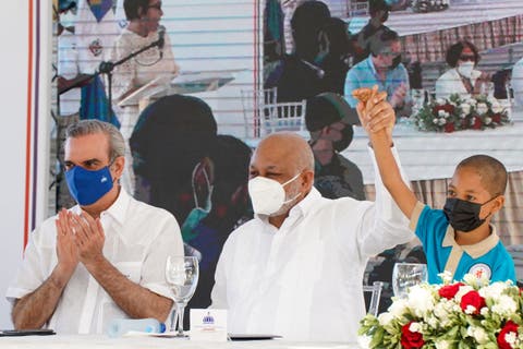 Ismael Joel Reyes, de cuarto grado y en representación de los estudiantes de Palmarito, Los Guandules y Santo Domingo Savio, expresó su agradecimiento por la obra, tras lo cual el presidente Abinader lo cargó en brazos como gesto de admiración.