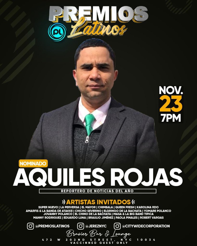 Santiago, Rep. Dom.-El periódico digital elmensajerord.com felicita a nuestro corresponsal en Nueva York, Aquiles Rojas, por su nominación como reportero de noticias del año en Premios Latinos a efectuarse este martes 23 de noviembre.