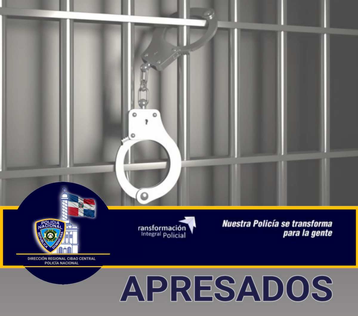 Mediante una labor de prevención e inteligencia por agentes policiales adscritos a esta Dirección Regional Cibao Central, en las últimas horas, ocuparon 6 armas de fuego que dio como resultado el apresamiento de los nombrados Orlando Antonio Meléndez Rodríguez, Eddy Reyes Páez (El Chino), Rafael Eligio Peña, Félix E. Jerez, Odalis A. Castillo.