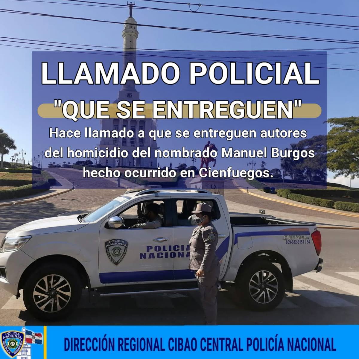 Santiago, Rep. Dom. -Agentes de la división de homicidios en la Dirección Regional Cibao Central y el Ministerio Público, persiguen a los nombrados Javier Aníbal Espinal Classe alias “El Cura”, “Nano”, “Fanguito” y “Paul”, quienes fueron identificados como autores de dar muerte a Luis Manuel Burgos, por heridas de arma de fuego.