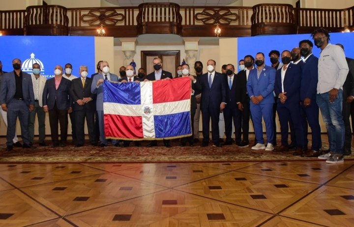 SANTO DOMINGO, RD.- El Presidente de la República, Luis Abinader, recibió y entregó la Bandera Nacional al equipo campeón de la Liga de Béisbol Profesional de República Dominicana (LIDOM), Gigantes del Cibao, en el salón Las Cariátides del Palacio Nacional.
