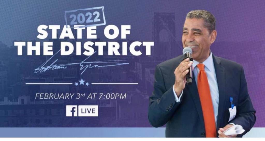 NEW YORK, N.Y. – El congresista Adriano Espaillat (NY-13) presentará su discurso anual sobre el Estado del Distrito el jueves, 3 de febrero, a partir de las 7:00 p.m. EST, transmitido en vivo en Facebook.