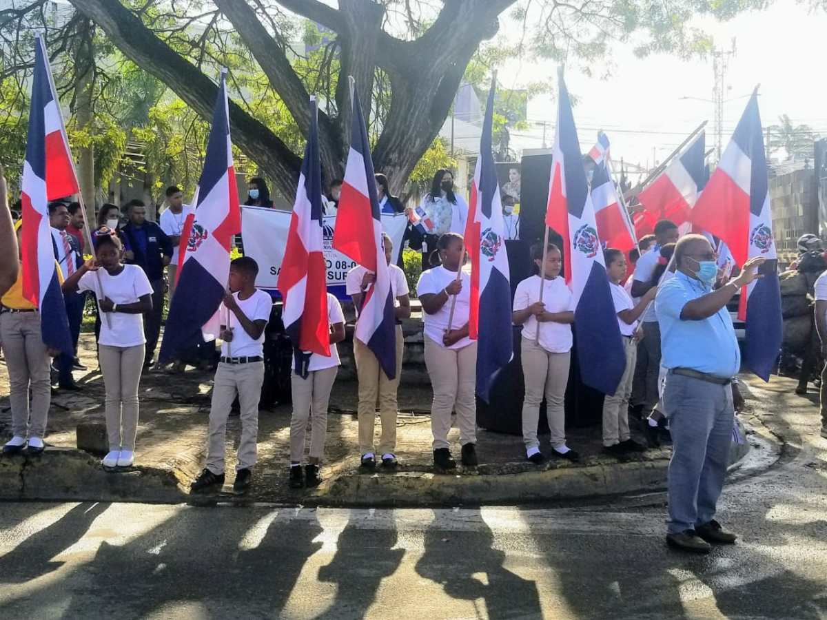 Santiago.- El Distrito Educativo 08-03 Santiago Sureste celebró hoy una Parada Cívica con la participación de estudiantes y maestros, con motivo del Mes de la Patria.