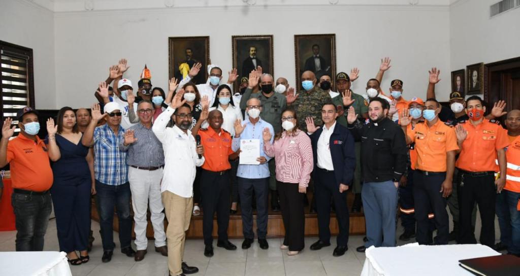 Santiago, RD.- El director ejecutivo de la Defensa Civil, y presidente de la Comisión Nacional de Emergencias, Juan Salas, hizo entrega este miércoles, en la Gobernación Provincial de esta ciudad, la agenda temática para la gestión de riesgos, a los representantes de la provincia y el municipio del Comité de Prevención Mitigación y Respuesta (PMR).
