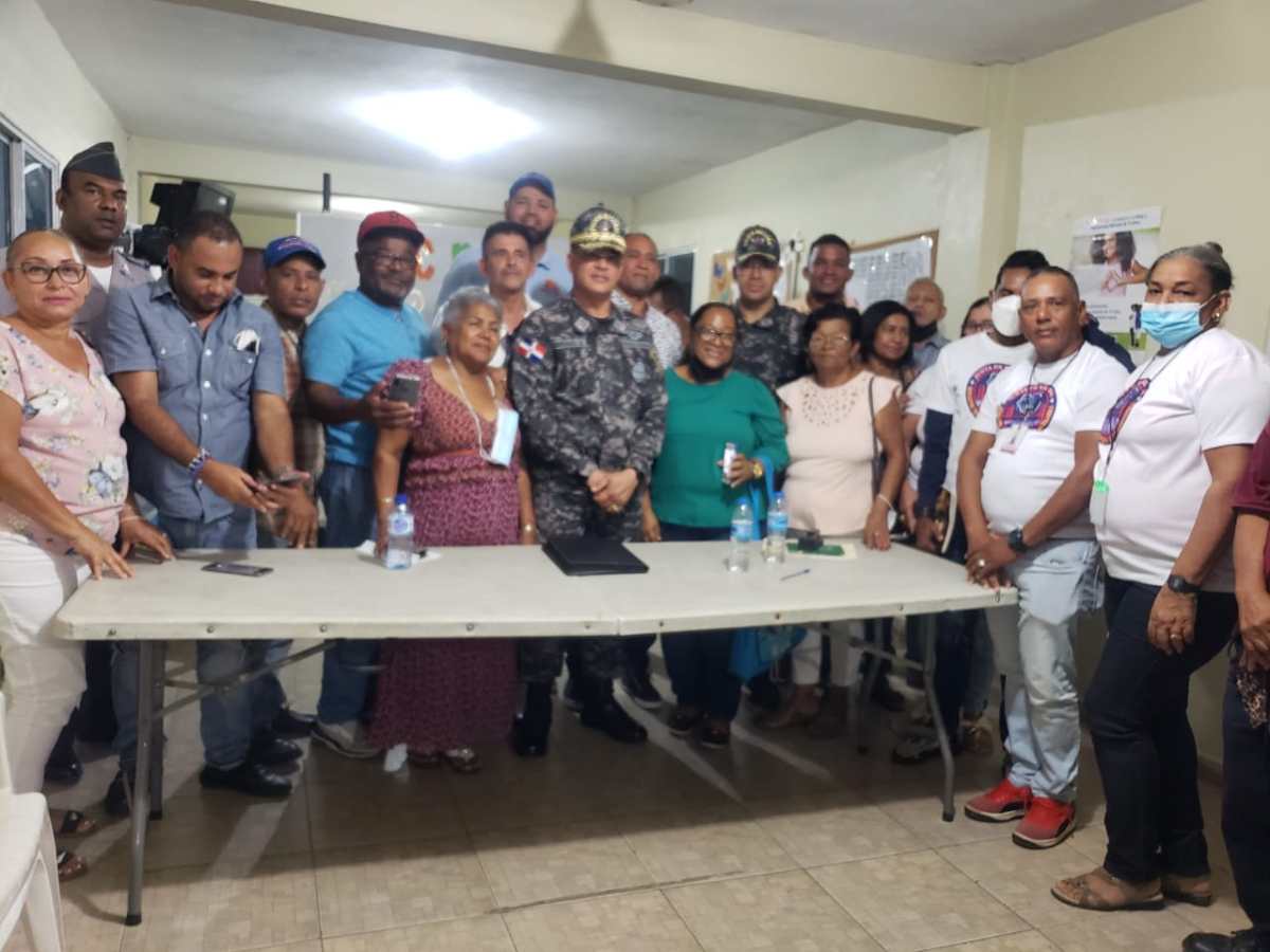 Director Regional Cibao Central Policía Nacional, General de Brigada, Lic. Ernesto Rodríguez García siguiendo las directrices del Director General de la Policía Nacional, Mayor General, Lic. Eduardo Alberto Then, P. N., continúa con las proximidades policiales con la finalidad de generar soluciones a temas sociales planteados en un encuentro con dirigentes comunitarios del sector La Joya.
