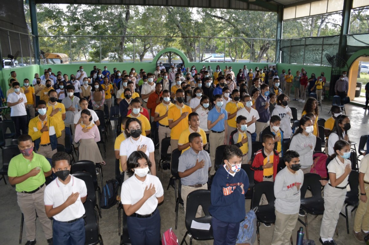Motivó a los niños a ser maestros, fisicos, científicos, economistas, ingenieros o quizás ser uno de ellos presidente del país, y los exhortó a mantener la calma y ser dignos fieles representantes de sus centros educativos.