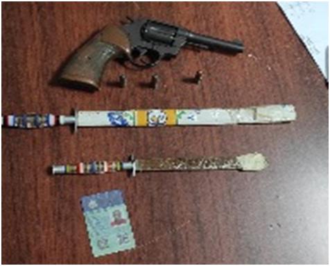 Agentes de la Subdirección Regional Cibao Central de Inteligencia (DINTEL) de la Policía Nacional y del Ministerio Público, apresaron a una persona durante un allanamiento realizado en una compraventa en el ensanche Libertad, donde se ocupó un arma de fuego con numeración ilegible, dos pasolas sin documentos y dos armas blancas.