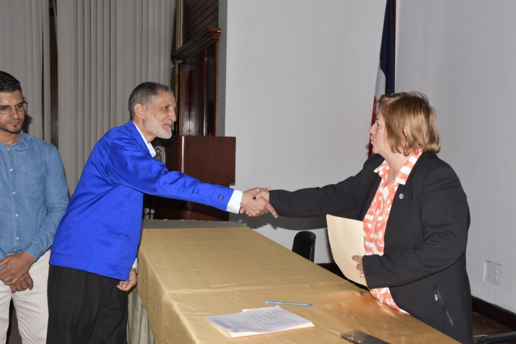 «Yo distingo la investidura de todos ustedes, porque ustedes son mis maestros, ustedes son mi clase», dijo la funcionaria al recibir la comitiva de ADP encabezada por su presidente en Santiago, Miguel Jorge, y el enlace nacional Víctor García.