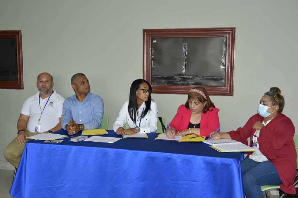 El encuentro de socialización lo encabezaron Marieta Díaz directora regional de Educación, Carol Pujols coordinadora administrativa, Gabriel Concepción y Francisco Javier Peña de la Dirección General de Gestión Ambiental y de Riesgos.
