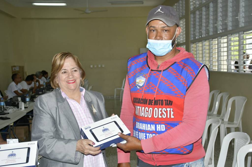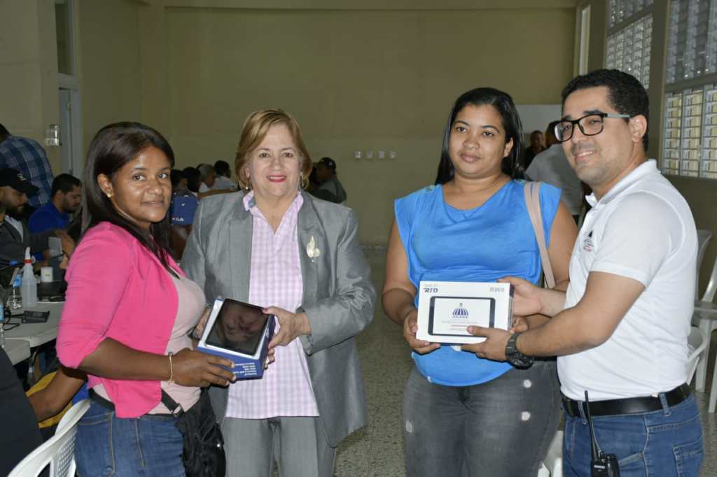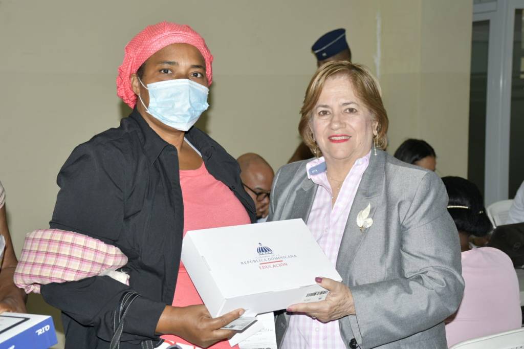 En Santiago, en acto encabezado por la ditectora de la Regional 08 del Minerd Marieta Díaz, se están entregando 17 mil dispositivos electrónicos.