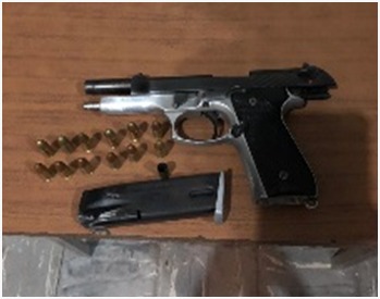 A Inoa Gomeras se le ocupo la pistola Prieto Beretta, calibre 9mm., serie No. BER070202Z, con su cargador y 12 capsulas para la misma, que portaba ilegalmente, además la motocicleta marca Gato CG-200, color negro, sin placa, que utilizaron para cometer el frustrado atraco.